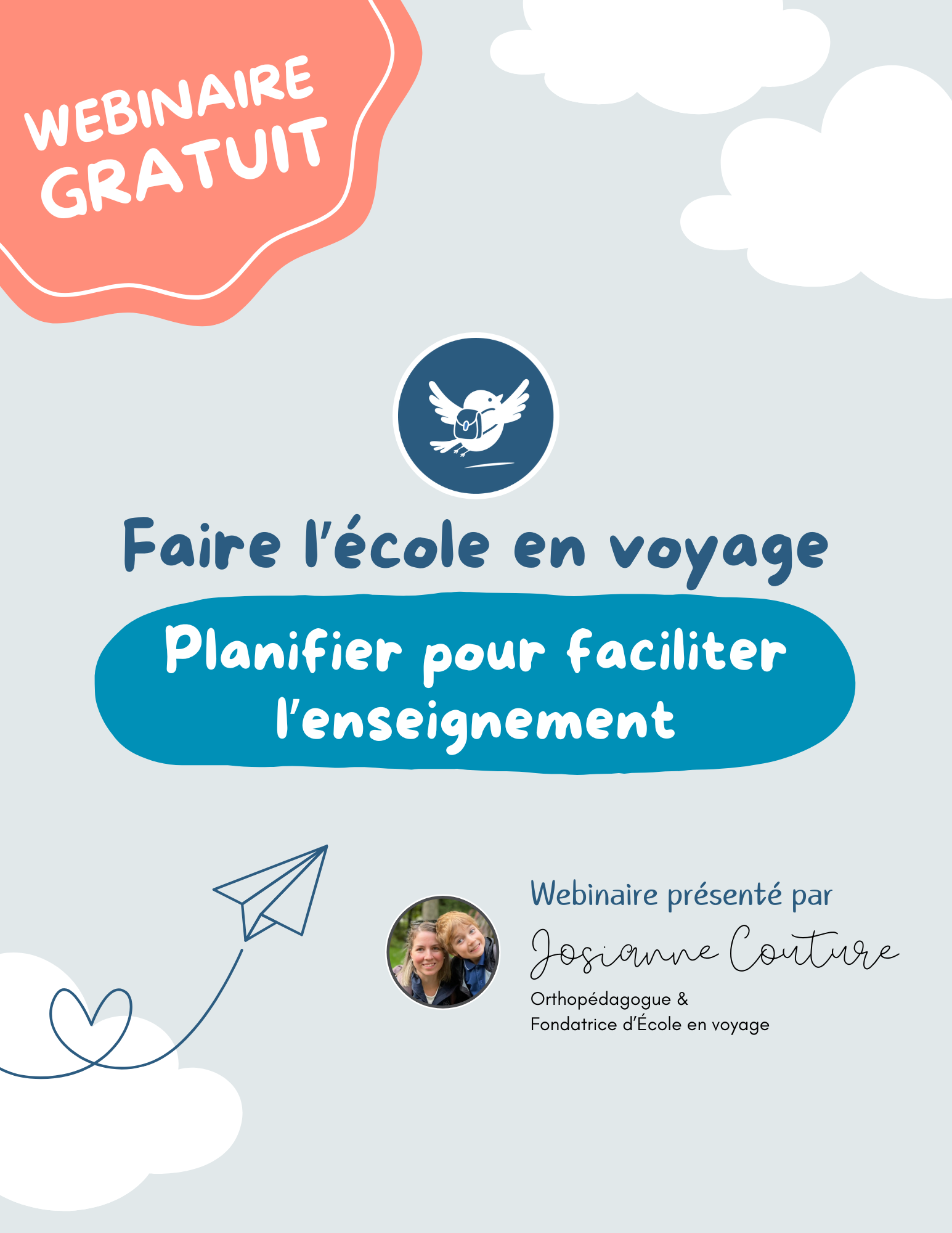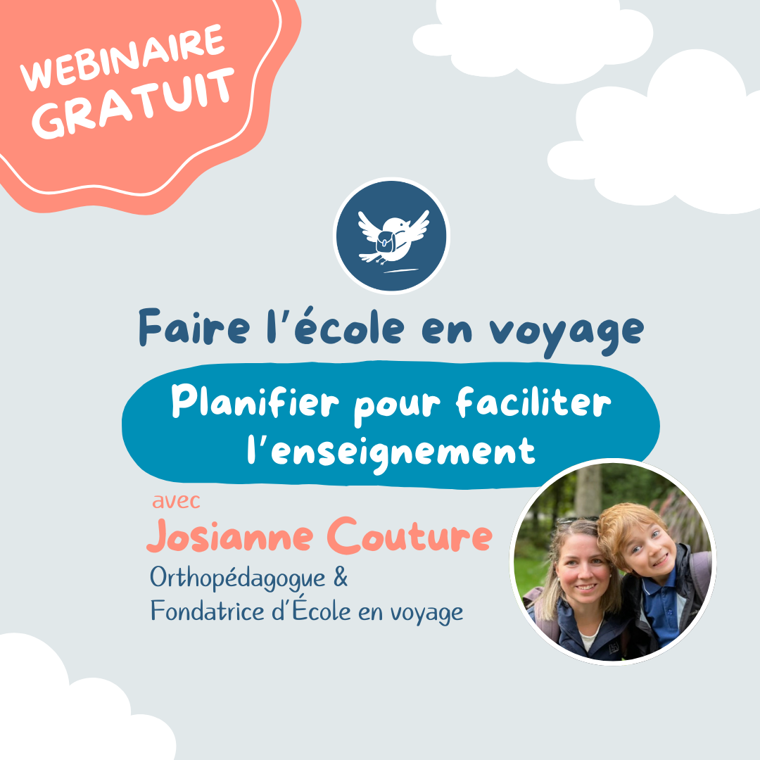 Avant de partir à l'aventure et de faire l'école en voyage, planifier peut s'avérer une étape essentielle dans ta préparation. Que ce soit pour faciliter le retour en classe, pour éviter d'oublier certaines notions, pour t'aider à intégrer les apprentissages dans le quotidien ou pour t'assurer que tout se passe bien, la planification est un incontournable et, bonne nouvelle, on peut t'aider!
