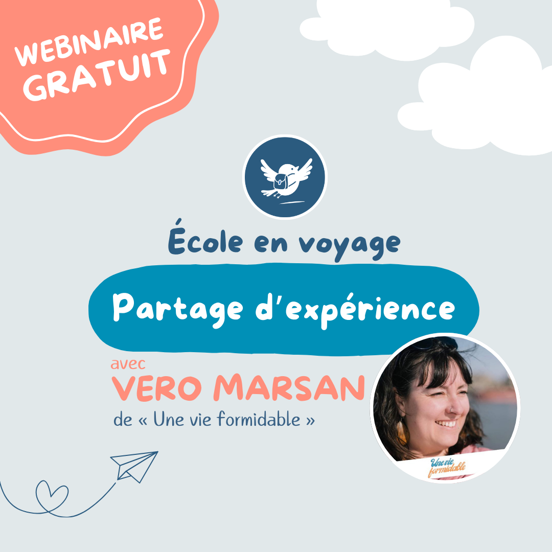 Véro Marsan est accompagnante en parentalité consciente, maman de deux enfants et voyageuse passionnée. Depuis plus de 20 ans, auprès des familles, elle vit l’école à la maison… en voyage. Dans ce webinaire elle te partage son expérience d'école en voyage.